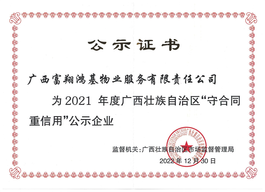 廣西富翔鴻基物業服務有限責任公司成立于2001年5月,注冊資金為人民幣1000萬元,為中國物業協會理事單位,廣西物業管理專業委員會副主任單位,桂林市物業服務行業協會副會長單位。自成立以來,嚴格遵循“業主至上”的工作宗旨,大力倡導“嚴格苛求、自覺奉獻”的工作精神。